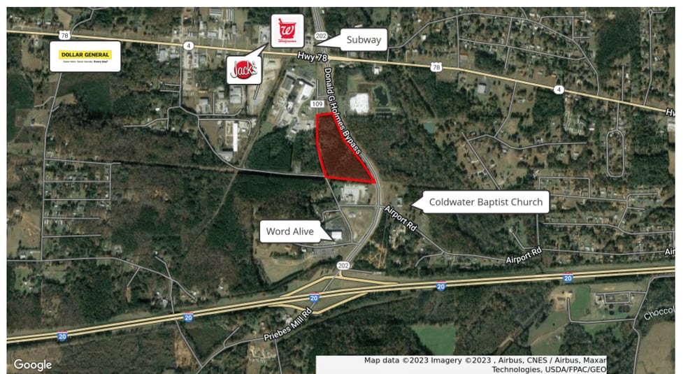 2 - 16.3 Acres of Commercial Land for Development. I-20 Interstate Exit prime for new development. Excellent location for travel center, QSR, hotel, industrial, retail, cstore, etc.