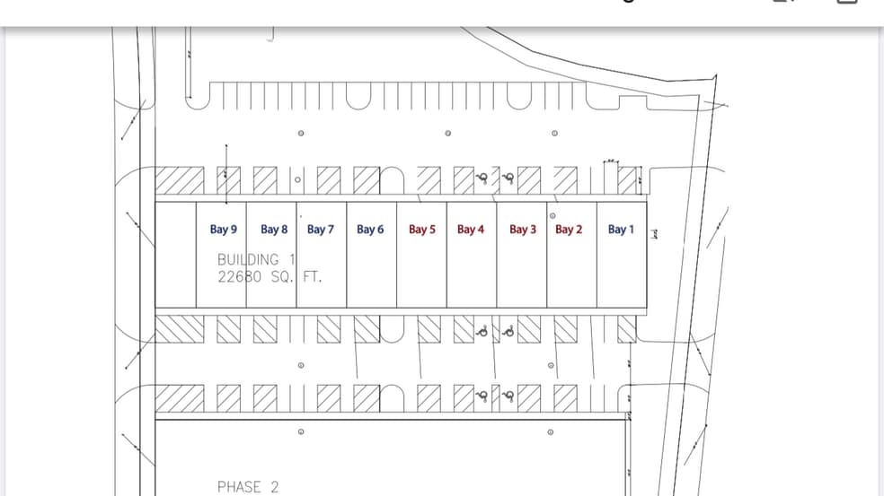 The building will be 22,680 square feet w/ 9 bays. The owner will occupy 5 bays and 4 will be available for For Lease. There are 4 condo bays available For Lease. Each condo bay is 2,310 sq ft. Bays are intended to be 50% office and 50% warehouse. Interior can be customized and built-out by buyer after base building is delivered. Each condo bay will have a rollup door in the back. There is a shared dock for owner occupiers / Tenants. The total number of parking spots is TBD. Plans may be augmented to allow for additional parking. Please note - Delivery of the base building is TBD, but should be early 2027.