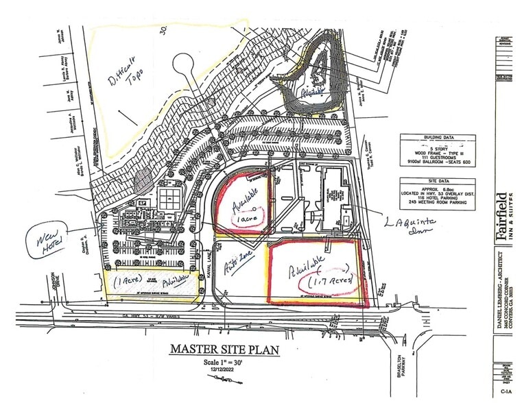 two hotels within walking distance of property. Price is $1,000,000 per acre. Prefers offer as ground lease or a build-to-suit.