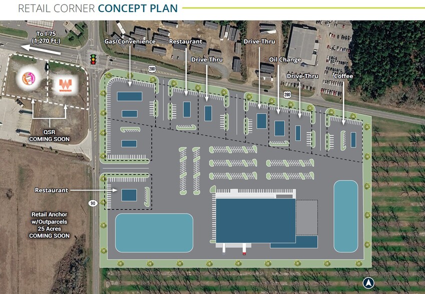 - Prime visibility from I-75 and more than 3,500 feet of Hwy 280 frontage.