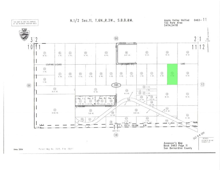 There is not an address associated with this parcel. What is reflected is the Parcel# 0463-111-11-0000 which is +/-5 Acres zoned RL-5. Located just outside of the Town of Apple Valley boundary in Unincorporated San Bernardino County. This is a corner lot that has access on both sides via dirt Leaping Lizard Ln.