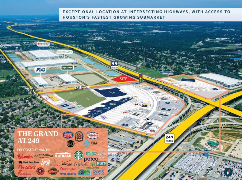 - Frontage along Grand Parkway and Rocky Rd.