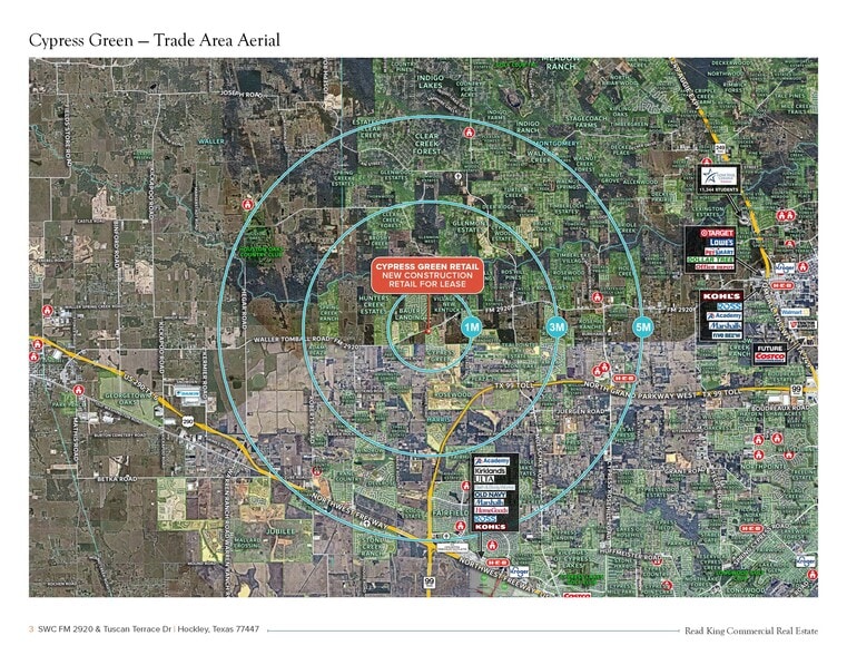- Excellent visibility along FM 2920, positioned at the entrance of Cypress Green, a 634 AC masterplanned community