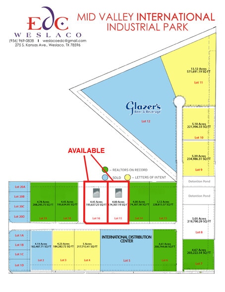 Valley International Industrial Park in Weslaco at the intersection of Economic Ave. and Development Dr. Adjacent to lots are zoned for various industrial uses of Class