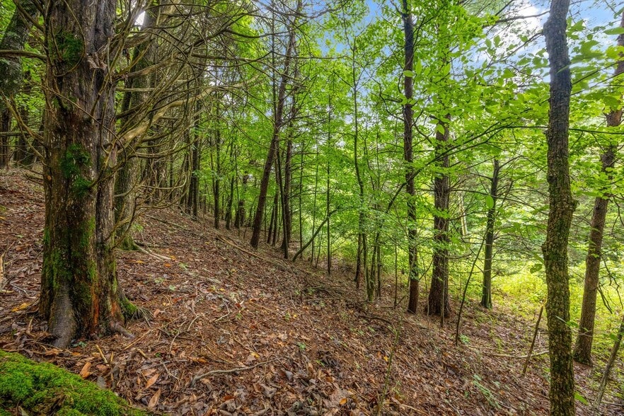 Utilities—including city water, natural gas, and electricity—are available at the road. The mix of rolling, level, and some steep terrain allows for versatile site planning, and approximately one mile of internal trails already exists, making the property easily walkable or accessible by side-by-side. Despite the wooded appearance, the land is not densely packed, allowing for easier clearing and development.