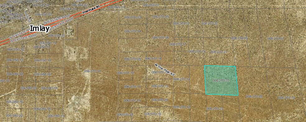 Located south of Interstate 80, with easy access to both the Imlay freeway interchange to the west and the Mill City interchange to the east. Three very lightly traveled dirt roads pass by the area and the property from both the east and the west. Services are available nearby both east and west of the property along Interstate 80, primarily at the Imlay and Mill City interchanges. The property is located about 20 minutes west of Winnemucca, 2 hours east of Reno, and 4 hours west of Salt Lake City, all lying along Interstate 80.