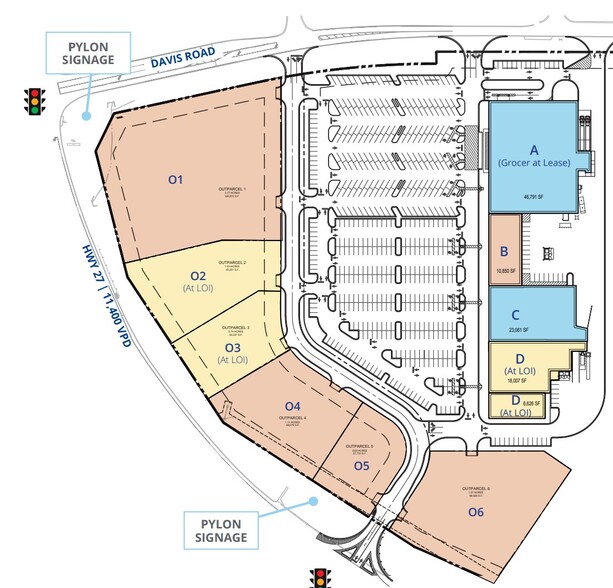 - Site benefits from full access along Hwy 27 and Davis Rd