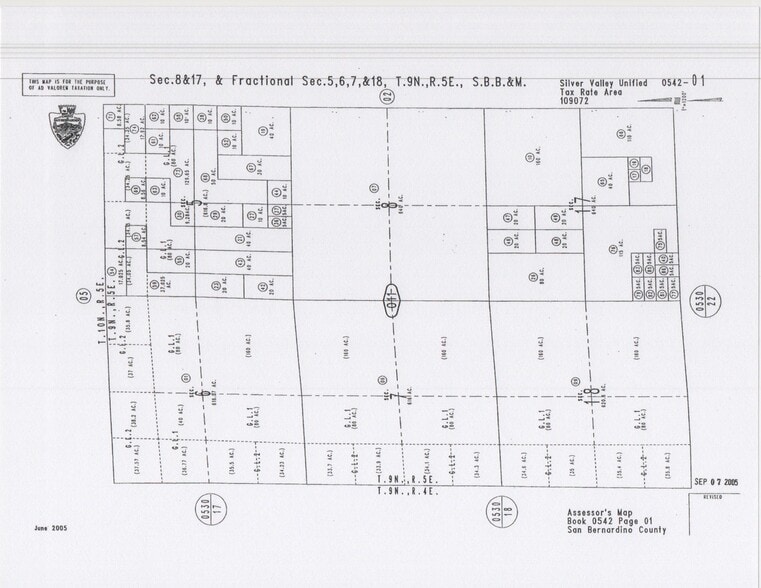 There is not an address associated with this parcel. What is reflected is the Parcel# 0542-011-71-0000 which is +/-8.58 Acres. Zoning is RC. Located in Unincorporated San Bernardino County very near the Cady Mountains. THE NORTHEAST QUARTER OF THE NORTHEAST QUARTER OF THE NORTHEAST QUARTER OF SECTION 5, TOWNSHIP9NORTH, RANGE 5 EAST, SAN BERNARDINO BASE AND MERIDIAN, IN THE COUNTY OF SAN BERNARDINO, STATE OF CALIFORNIA, ACCORDING TO THEOFFICIALPLAT THEREOF. EXCEPTING THEREFROM AN UNDIVIDED 1/2 INTEREST IN ALL CRUDE OIL, PETROLEUM, GAS, BREA, ASPHALTUM AND ALL KINDREDSUBSTANCESAND OTHER MINERAL UNDER AND IN SAID LAND, AS RESERVED BY W.W. BOSWELL, JR., ET UX., BY DEED RECORDED JULY 22, 1959 IN BOOK 4881,PAGE 329, OFOFFICIAL RECORDS. I-15 is +/- 9 miles away where new high speed rail train is expected to travel. Nearest homes +/-5.88 miles away in the Newberry Springs area. Pavement +/-10 miles away. Power +/-5.85 miles away.