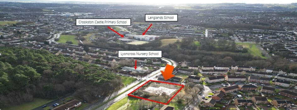 The development is located on the north side of Barnbeth Road at its junction with Lyoncross Road, in the southside of Glasgow. The immediate area has seen extensive regeneration in recent years with substantial housing developments at the westernmost side of the site.