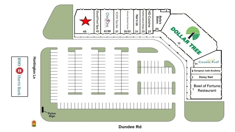 Wheeling Commons is a retail and medical center available for lease in Wheeling located at the NEC of Dundee and Huntington Lane. The property is ideally located in a dense trade area surrounded by residential homes, rental properties, retail and has very strong demographics. Highly visible from Dundee Road , ample parking (178 spaces), signalized intersection and a lighted monument sign for tenants. Store sizes range from 1,120 – 11,000 sqft. US Census anticipates a strong household growth rate over the coming five years. The center is served by Pace Bus route #234 and is 2.5 miles east of I-53 and 1.5 miles west of the Wheeling train station. Wheeling holds an A rating from niche.com of best places to live in Illinois.