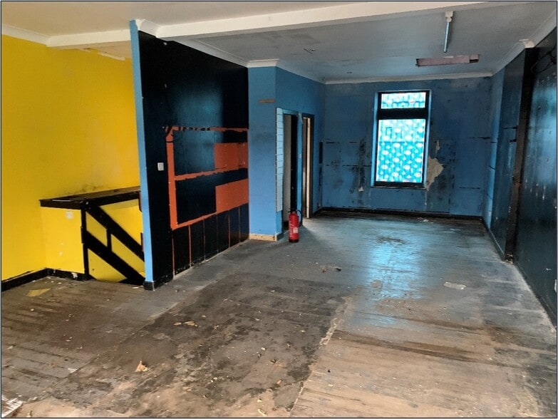 A mid terrace retail unit formed over ground and lower ground levels having brick walls and surmounted by a pitched slate roof.