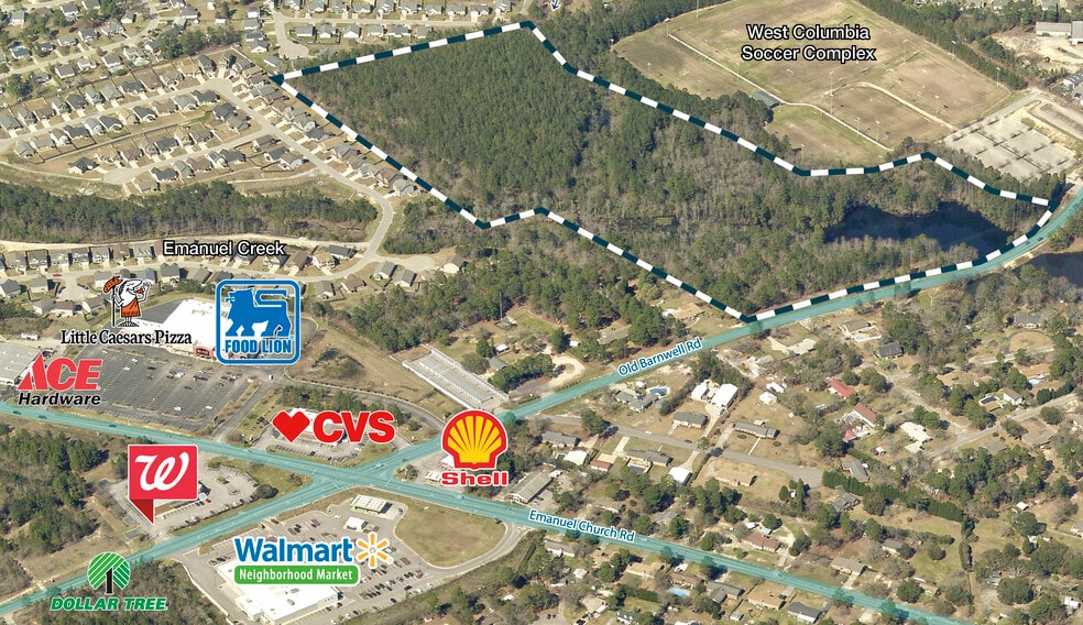 CAE Site 1 | ±33.53 Acres | ±13.0 developable acres Lexington County tax map 005599-05-003 | Zoning: ID, Lexington County Electricity provider: Mid-Carolina Gas provider: Dominion Energy Water & sewer available on Old Barnwell Rd Other sites avail