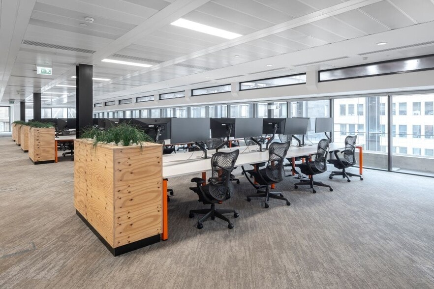 The part 3rd floor north offers fully fitted space, featuring a high quality fit out, with offices, open plan workspace, meeting rooms, a board room, and a generous kitchen / breakout area.