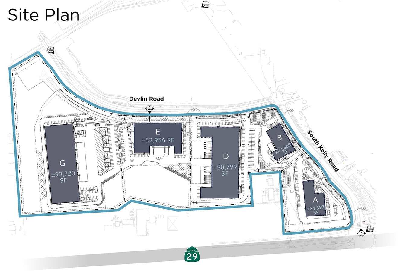Napa Airport Corporate Center consists of 5 Entitled Industrial Buildings located in American Canyon within Napa County. Project is located on 50 acres. Dock and Grade-Level Loading Doors. Excellent Visibility, Truck Staging & Access. Napa Airport Corporate Center is Located in Close Proximity to Napa County Airport, Adjacent to Highway 29, Just ½ Mile from Highway 12. BUILDING A: ±24,397 SF BUILDING B: ±22,668 SF BUILDING D: ±90,799 SF BUILDING E: ±52,956 SF BUILDING G: ±93,720 SF