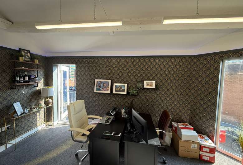 The available accommodation comprises a refurbished first-floor office arranged in an open plan configuration, extending to approximately 600 sq ft. The space benefits from good levels of natural light, LED lighting, electric heating, carpeted floors, and fitted kitchen and WC facilities. An enclosed balcony accessed from the first floor provides additional amenity space. The layout is well suited to small professional occupiers seeking modern town centre accommodation.
