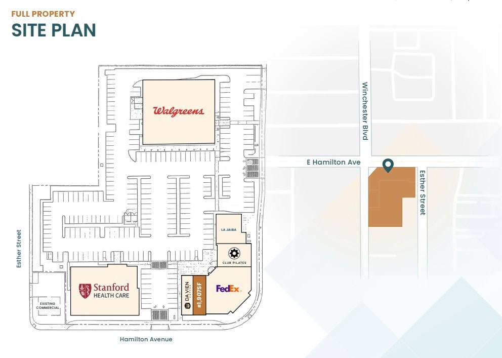 - Co-Tenant: Fedex, Taqueria Y Mariscos La Jaiba, Club Pilates, Stanford Health Care.