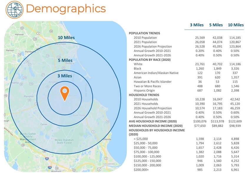 The Pilgrim Hill Plaza is ideally located in the South Shore, an affluent community that is only thirty minutes south of Boston. The site also benefits from its prime location just miles from the historic Plymouth Bay shores, in Plymouth Massachusetts. The subject investment property is situated on Pilgrim Hill Road just off Samoset Street, which has an average daily traffic count of 32,750 vehicles. Samoset Street serves as an access road to Pilgrim’s Highway, which brings an additional 87,450 vehicles into the immediate area on average daily. There are more than 44,000 individuals residing within a five-mile radius of the property and more than 120,800 individuals within a ten-mile radius. Additionally, the subject property is situated in an extremely affluent community. The average income within a ten- mile radius is greater than $122,600, which is double the national average. The Pilgrim Hill Plaza is located in a major retail cluster with dozens of national and local tenants, medical facilities, and shopping centers all within close proximity of this property. Major national tenants include: CVS, Walgreens, Stop & Shop, Staples, Pet Supplies Plus, Starbucks, McDonald’s, Burger King and many more. This property is located three miles from the Beth Israel Deaconess Hospital, a 168-bed acute care community hospital and medical facility that serves residents from over 12 towns in the Plymouth and Barnstable counties. Other medical facilities nearby include: Plymouth Rehabilitation & Health Care Center, Plymouth Harborside HealthCare, Stafford Hill Assisted Living, in addition to various others. Also, the subject property is located within walking distance to the Plymouth Cultural District where tourists flock to, either for a walk in the Nelson Memorial Park, a Visit to the Pilgrim Hall Museum, or to see the historic Plymouth Rock where the Mayflower touched down in the Americas. Plymouth is a town in and one of the county seats of Plymouth County, Massachusetts. Plymouth holds a great prominence in American history as it was where the Mayflower Pilgrims touched down in the early 1600s. It is located on the Southeastern Shore of Massachusetts and continues to act as an active port for the fishing economy of New England, yet today, the economy is primarily driven by tourism. The Pilgrim Hall Museum, located in Plymouth is the oldest operating museum in the United States. The largest employer in the town is the Beth Israel Deaconess Medical Center. Other major employment sectors include Tourism and Scientific Research.
