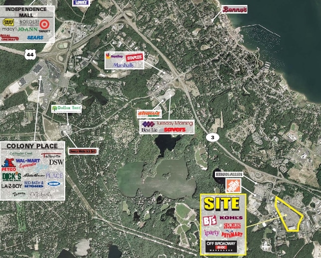 LOCATION, LOCATION FREESTANDING RESTAURANT ON 2.! ACRE SITE. POSSIBLE GROUND LEASE .10 Shops at 5 Way is a well-located neighborhood retail property positioned at a highly visible five-way intersection in Plymouth, Massachusetts. The site benefits from strong frontage and convenient access along Long Pond Road, near major regional retailers and the entrance to The Grove at Plymouth. Surrounded by established national and local businesses, the property serves a dense and active trade area and is well suited for a variety of retail, service, or restaurant uses seeking consistent traffic and strong market visibility.