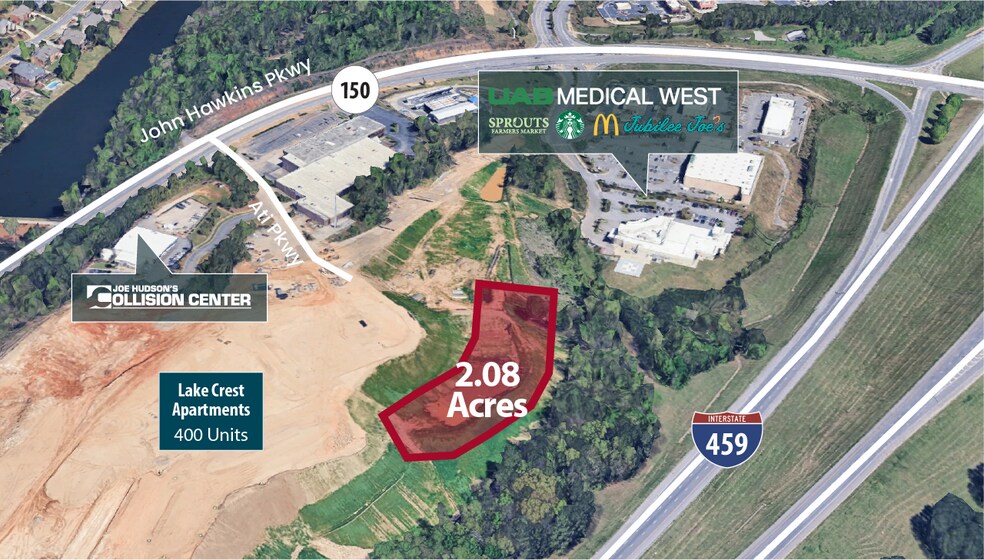 Position your next development for success with this premier 2.08± acre pad-ready site located on Baron Wood Parkway, just off the intersection of Hwy 150 and I-459 in the heart of Hoover, Alabama. Boasting exceptional visibility and direct access from Hwy 150, this site is ideally suited for hotel development or other high-traffic commercial use.