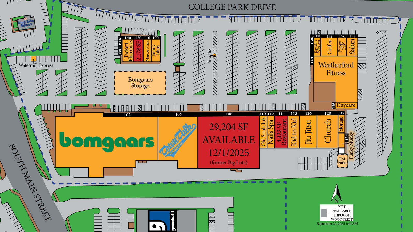 | Total Space Available | 35,804 SF | Frontage | 1,335’ on College Park Dr |