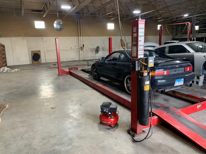 Car Repair Facility with Offices and Parts Department • Three large work bays with three car and truck lifts included. • Two level parts cage with loading dock • Restroom with shower • Four large Offices. • Three office restrooms • Break room • Customer waiting area with two restrooms • Large storeroom • In floor radiant heating system with newer boiler • Three retail spaces facing high traffic street • Large fenced concrete parking lot • 20 by 45 bonus building with fenced gravel lot.