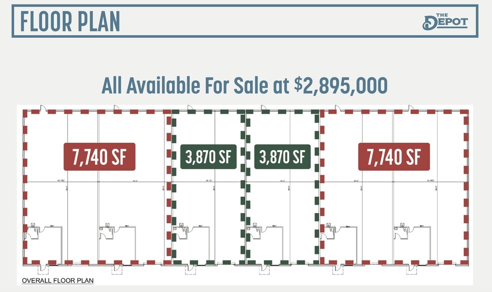 White Oak Commercial Real Estate is pleased to present Building 1 within the Depot at Midway Station development FOR SALE. Building 1 is a 23,220 SF flex industrial building that sits on 1 acre. The building is split up into two 7,740 SF units and two 3,780 SF units. The other buildings in the development are bringing $10/SF + NNN.