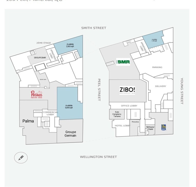 - Opportunity to join a diverse tenant base at the corner of Peel Street and Wellington Street, including Restaurant ZIBO! and RBC Royal Bank.