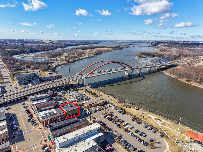 The second floor provides additional dining or event space with scenic views of the Mississippi River Valley, offering a unique atmosphere for guests. Ample parking is conveniently located directly across the street in a city-owned lot, making access easy for customers and staff.