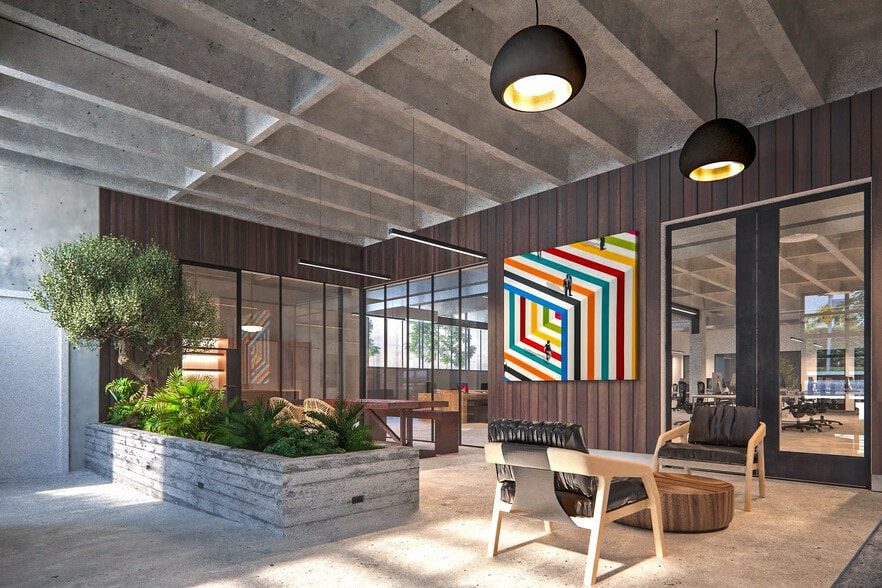 - Architectural redesign yielding high ceilings for a spacious and inspiring work environment. - Adjacent surface parking lot providing ample and convenient vehicle space for tenants and visitors. - Newly installed storefronts and expansive windows, inviting natural light and enhancing curb appeal. - Secluded and covered outdoor patio offering a versatile space for work and leisure. - Luxurious new kitchens appointed with high-end finishes and sleek imported marble countertops for a touch of class