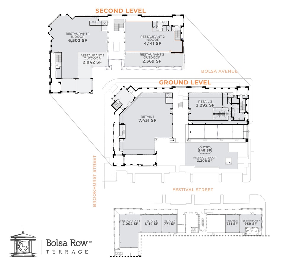 At its core, Bolsa Row Terrace at 10000 Bolsa Avenue is a place to gather, connect, and explore. This brand-new construction seeks to offer best-in-class contemporary dining and shopping experiences for a changing Little Saigon demographic, solidifying its place as one of Orange County’s most dynamic cultural hubs. Bolsa Row Terrace's elevated and inclusive restaurant offerings aim to extend beyond Vietnamese cuisine to include American and more. Further, in a nod to the spirit of Ben Thanh Market, Bolsa Row Terrace serves as a community hub to gather and shop. Its directory of best-in-class contemporary brands is slated to be filled with leading names in luxury fashion, fine jewelry, and more. A café kiosk will be located centrally in Bolsa Row, offering high visibility and attracting foot traffic. The outdoor kiosk provides al fresco bistro seating for a cafe-minded food and beverage vendor. This retail development will have at least five restaurant opportunities and boutique shopping storefronts, complemented by 119 parking spaces with an additional 114 in overflow parking. Nestled within Bolsa Row, a synergistic mixed-use experience that will include luxury rental units and intuitively designed retail space for restaurants, shops, and services once completed. The 6-acre, vibrant, and inclusive destination will comprise 26,211 square feet of Class A retail and a 200-unit apartment community. Spearheaded and developed by a family with deep community roots, Bolsa Row sits at the gateway to Westminster’s Little Saigon District, the world’s densest concentration of Vietnamese-language speakers outside of Vietnam. Westminster has a population of 98,000 people, and 40% are Vietnamese Americans. World travelers will recognize that the French colonial architecture and design pay homage to Saigon before the Vietnam War and the iconic Ben Thanh Market. Bolsa Row is conveniently located on the SE corner of Brookhurst Street and Bolsa Avenue, the gateway of Westminster’s vibrant Little Saigon district. Within proximity to Interstate 405 and State Route 22 Freeways, businesses will be at the center of Orange County’s best and newest offering. Capitalize on unmatched visibility, a strong cultural anchor, and sophisticated design at Bolsa Row Terrace, poised to become the best retail and dining destination of choice in Little Saigon.