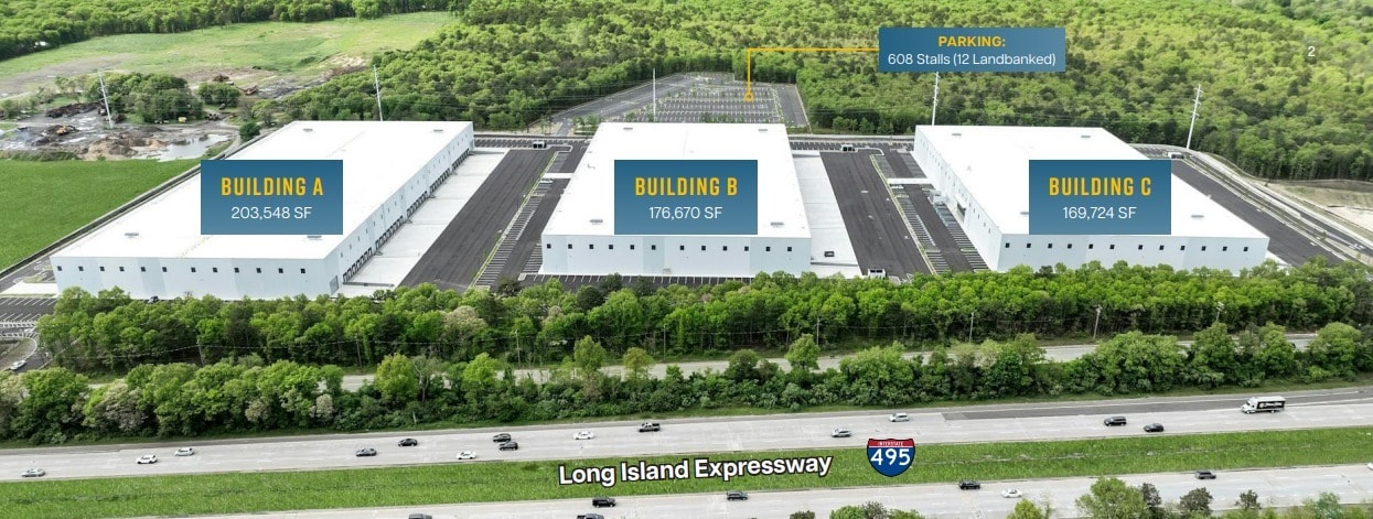 Building A at Brookhaven Logistics Center offers a newly constructed, high-performance industrial facility with efficient loading, modern life-safety systems, and direct frontage along the Long Island Expressway Service Road, providing exceptional regional logistics access; this functional asset features strong circulation, wide column spacing, and robust power capacity suited for distribution, e-commerce, and production users seeking modern infrastructure in a prime Suffolk County location, and tenants benefit from access to significant parking and yard depth while enjoying proximity to major industrial hubs, with the added advantage that Buildings B and C within the same park are also available for lease, offering occupiers multiple configuration options across the campus.