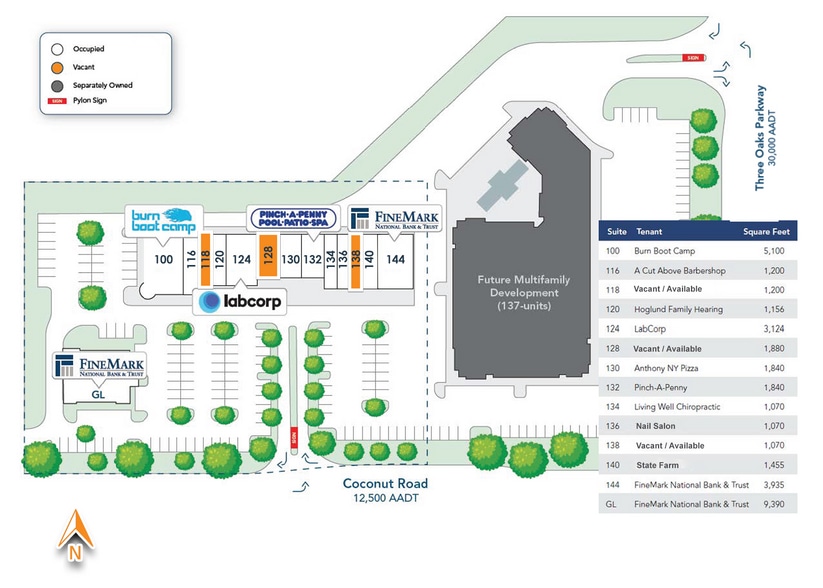 - Co-tenants include: FineMark National Bank & Trust, Burn Boot Camp, LabCorp, Pinch-A-Penny, and more