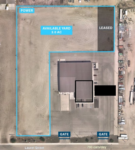 Industrial Yard for Lease | IOS / Fleet Storage Available Size: 3.0 Acres (130,680 SF) Zoning: I-P (Industrial Park), ideal for outdoor storage and fleet operations Availability: Immediate Lease Rate: $0.10/SF/month Monthly Rent: $13,068 Surface: Flat, well-compacted road base; professionally maintained Security: Gated yard Power: On-site power available (suitable for portable office) ±4 minutes to I-84 (Exit 27), direct access off Simplot Blvd (Hwy 19) Limited Inventory: Move-in ready IOS/fleet yard space is scarce in the Caldwell market Industrial Synergy: Surrounded by established users including Simplot, BigTex Trailers, and Arlo G. Lott
