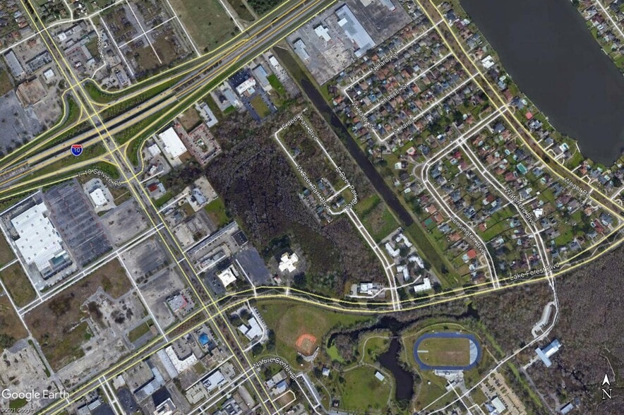 This land area fronts on I-10 Service Road and lake Forest Blvd. between Read Blvd. & Wright Road near Joe Brown Park.