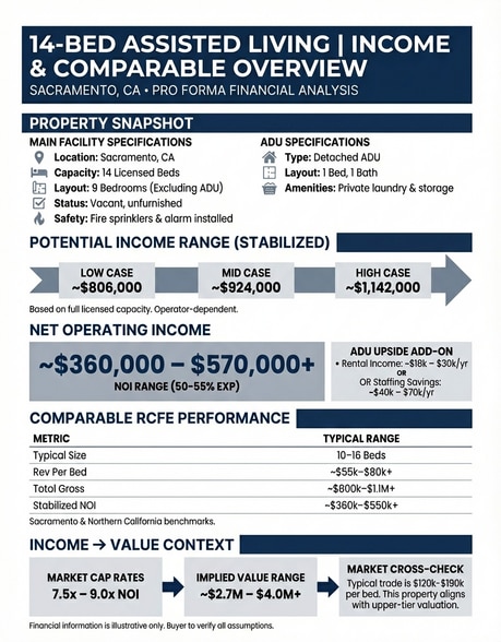 With its versatile layout, modern upgrades, and prime Sacramento location, this property presents a compelling opportunity for investors, care home operators, or developers seeking a value-add opportunity in the growing senior housing market.