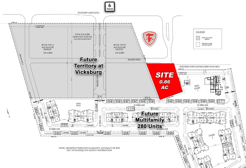 ±0.86-acre pad site available for sale at 10060 Highway 6 in Missouri City, Texas. This highly visible parcel offers direct access from Highway 6 and is positioned along a major retail corridor with traffic counts of approximately 40,670 VPD on Highway 6 and 11,224 VPD on the Fort Bend Tollway (TXDOT ’22). The property is strategically located adjacent to Kroger at Fort Bend Town Center I and directly across from Fort Bend Town Center II, making it one of the few remaining undeveloped sites near the intersection of Highway 6 and the Fort Bend County Toll Road. Surrounded by strong retail anchors and significant residential growth, including nearby single-family and multifamily developments, the site is well suited for retail or service-oriented development. Pricing available upon request.