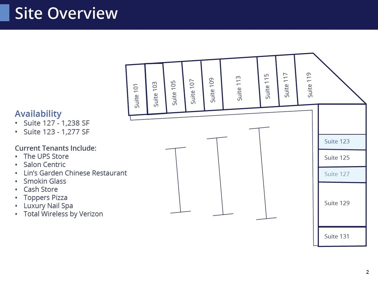 - Current available suites accommodate users to quickly move into their new office or retail location.