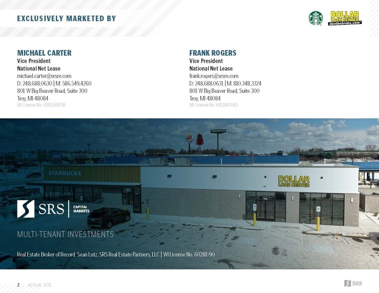 SRS Multi-Tenant Investments is pleased to offer the opportunity to acquire the fee simple interest (land & building ownership) in a drive-thru equipped, 100% occupied, 2-tenant Starbucks (NASDAQ: SBUX | S&P: BBB+) and Dollar Loan Center pad located in Beaver Dam, Wisconsin. The property spans across a 1.40-acre lot and consists of two suites totaling 4,075 SF. Built in 2024, the property offers state-of-the-art construction and top-tier amenities, significantly reducing the risk of near-term capital expenditures. Both tenants recently signed new 10- and 5-year leases with scheduled rental increases and multiple options to extend, demonstrating their long-term commitment to the site. Both leases are NNN in nature, minimizing expense leakage for a future investor. Starbucks occupies the larger end cap suite and is equipped with a drive-thru, providing ease and convenience for customers.