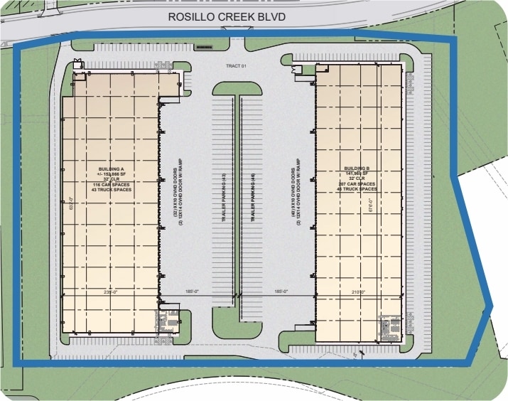 Rosillo Creek Industrial Park is strategically located on Interstate 10 in Northeast San Antonio, the heart of San Antonio’s Industrial Hub. Rosillo Creek Industrial Park, with direct access from E Houston St and visibility to the I-10 corridor will offer an unparalleled opportunity for tenants seeking to serve the Central Texas region. • I-1 Zoning • Regional Detention / Drainage Infrastructure in Place • Utilities to site (12” Water main, 6” Gas main, 8” Sewer, 3-Phase O/H) • Sites available for sale, for lease, or build-to-suit • Land sites divisible to 20 AC • 180 AC Site • Building sizes from 60,480 SF up to 1,243,595 SF Available • Phase II Pre-Leasing NOW! • Construction Drawings Complete - Phase II Platted • Building A: 152,888 SF • Building B: 141,880 SF • Two (2) 2.9 AC Retail Tracts on North & South sides of site • Direct access from I-10 & Loop 410 via E Houston St • Ample Car & Trailer Parks • 32’ - 40’ Clear • Front, rear & cross-dock configurations