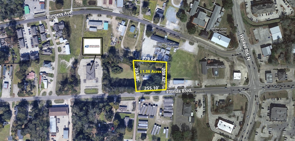 Approximately 1.36 acres of vacant land available on Florida Blvd. in Walker, LA. Lot measures 255.10' (Frontage) X 209.62' X 279.64' X 235.86'. House on Property is not included in sale. Set to be relocated. Adjacent lot, approximately 1.36 acres, is also available for sale. This property is located near the Walker Rd. N intersection which is also home to the new CITY PARC shopping center.