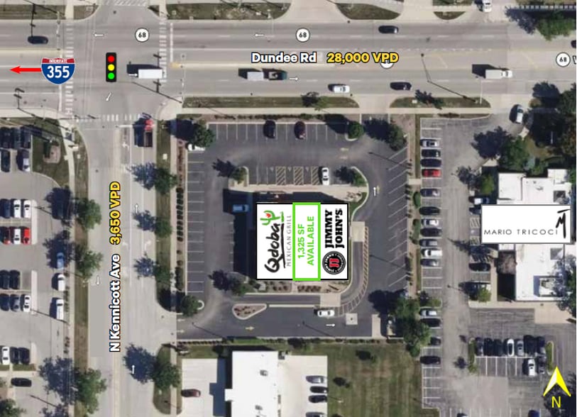 • +/- 1,325 SF Inline retail space available. • Join Qdoba and Jimmy John’s • Excellent Traffic Counts on Dundee Road (28,000 VPD) • Great Visibility • Good Daytime Population and Density