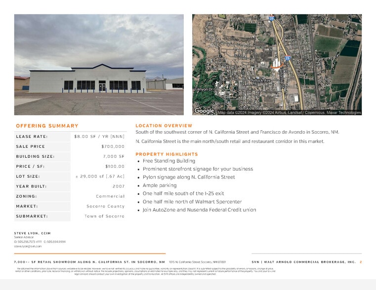 1015 N California St 7,000 SF Retail Building Socorro, NM 87801 $955,941 CAD ($136.56 CAD/SF)