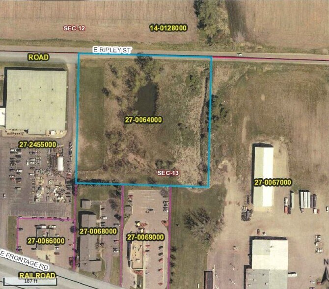 Exceptional opportunity to buy a high traffic developable commercial lot next to an existing successful business area. Excellent access, extra parking, and convenient delivery service. The site has built-in exposure from popular national retailers such as McDonalds, Runnings, H & R Block, etc, as well as local favorites, restaurants, and service centers. A generous ~5 acres offers ample space for multiple configurations, numerous options for egress and ingress, and has the added bonus of a water retention pond already on site. B4 Zoning covers most common business uses from Retail and Professional, to Office and Food Service. Its conveniently located between Hwy 12 frontage road to the south, and Ripley Ave service road to the north. This lot’s proximity to the 12 West Marketplace offers your future businesses immediate exposure, in a proven commercial corridor.