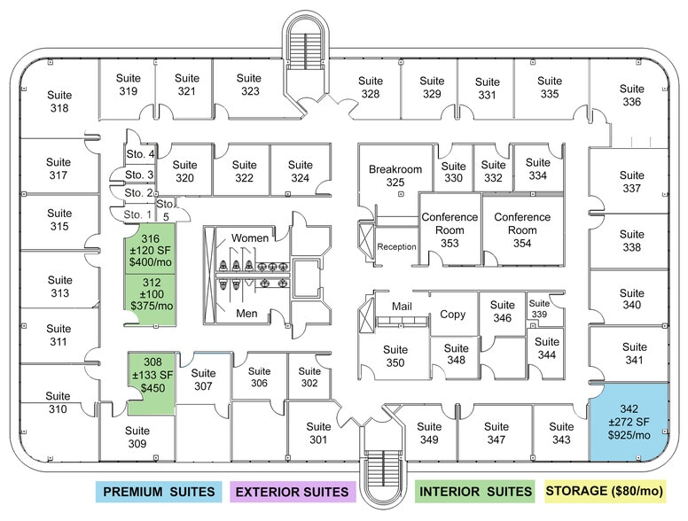 | 3rd Floor, Ste 342 | 1 - 3 | 272 SF | Upon Request Upon Request Upon Request Upon Request | Office |