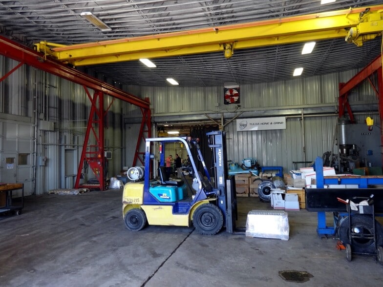 ±26,834 SF heavy industrial manufacturing facility available for lease in Tulsa, Oklahoma. The property is configured as two functional suites and offers flexibility for users seeking either the entire building or a partial lease. Suite A (±17,834 SF) is vacant and available for immediate occupancy and includes approximately 5,500 SF of office build-out with balance warehouse/manufacturing. Suite B (±9,000 SF) is currently leased on a month-to-month basis, allowing potential near-term expansion for an occupant leasing the full building. The facility is well-equipped for fabrication and manufacturing operations with multiple overhead cranes throughout, including 5-ton and 3-ton top-running bridge cranes and jib cranes. Clear heights are suitable for industrial uses, with heavy power available and grade-level access. An additional fenced yard area associated with Suite B may be available in conjunction with a lease of Suite A or the entire building. Located in an established industrial corridor with convenient access to major arterials, the property offers a rare combination of crane capacity, office build-out, and expansion flexibility. Offered on a NNN lease structure.