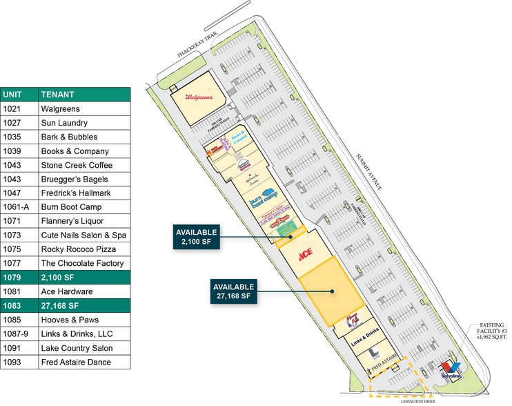 Established Walgreens anchored shopping center with multiple points of ingress/egress and unobstructed visibility to Hwy 67.