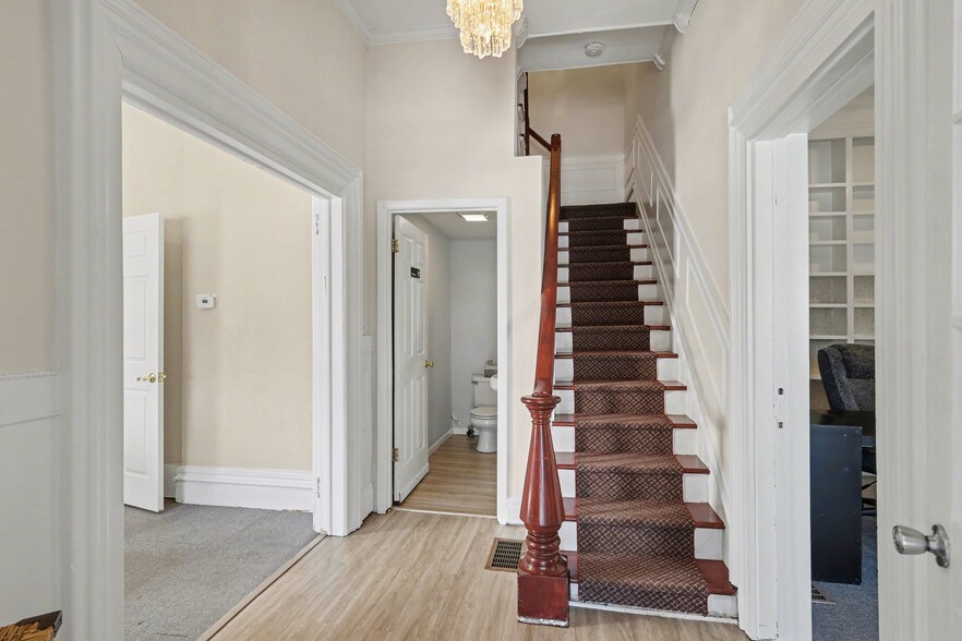 The main level is currently occupied by an engineering firm whose ownership is relocating, creating near-term availability for an owner-user or leasing opportunity at market rates. The office space features high ceilings, strong natural light, a half bath, kitchenette, and a flexible layout suitable for professional services or creative office use.