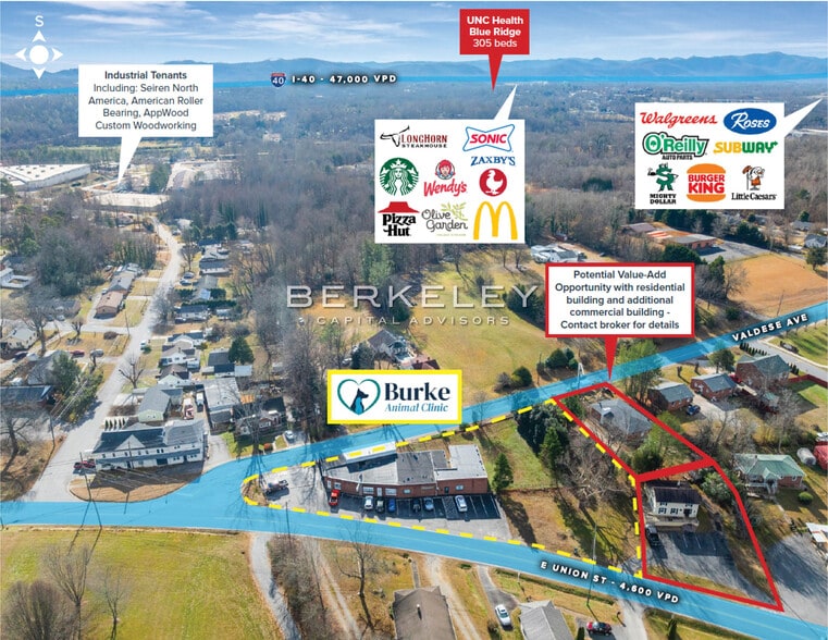 Burke Animal Clinic 1034 E Union St 5,000 SF 100% Leased Retail Building Morganton, NC 28655 $1,057,193 CAD ($211.44 CAD/SF) 7.40% Cap Rate