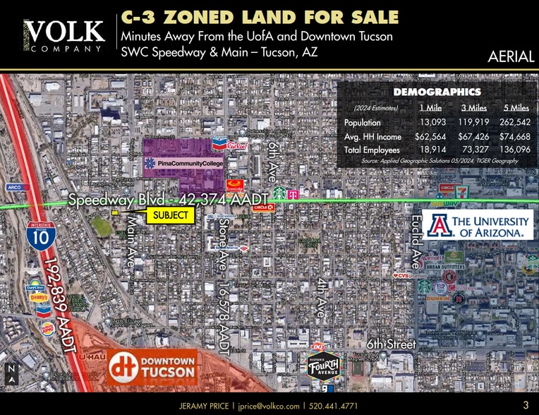 Situated on Speedway Blvd, this property experiences high traffic volume due to it being on one of Tucson's main east-west arterials. Land allows for many development uses and is situated within close proximity to Pima Community College.