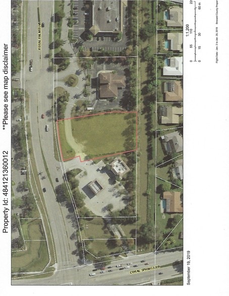 Prime retail location on Royal Palm Blvd (est traffic count 50,000) just east of Coral Springs Dr(est traffic count 25,000) platted, ready to develop. Just east of 7-11 . B-2 zoning City of Coral Springs. Folio # 484121360012. $90,000 per yr ground lease or owner will consider a build to suite for a qualified tenant.